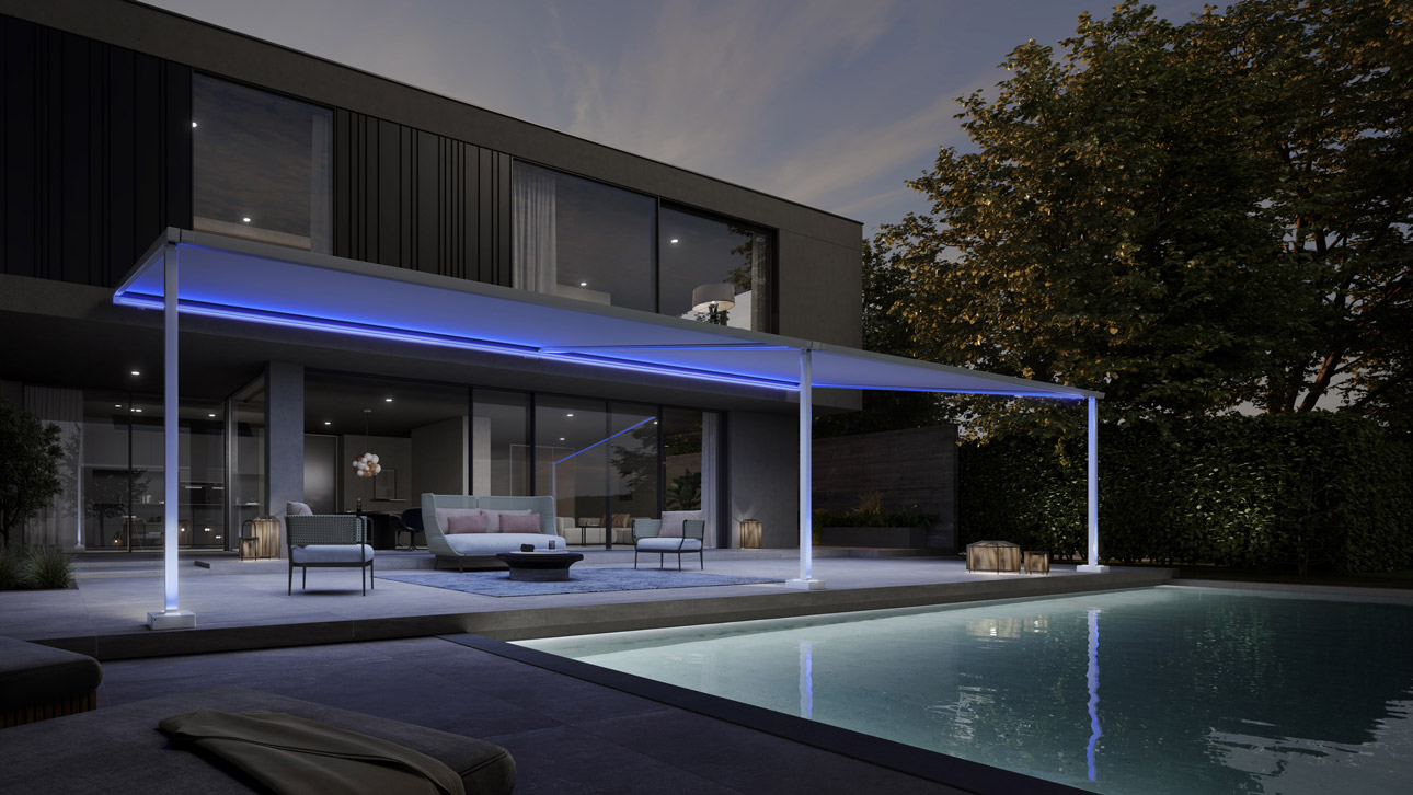 Die markilux pergola stretch bietet Ihnen eine neue beeindruckende Perspektive für das Leben und Wohnen im Freien. Das Markisentuch ist dank der rhythmischen und raumsparenden Falttechnik perfekt im Markisensystem integriert. Pergola stretch ermöglicht die Beschattung großer Flächen und sorgt mit ihrer Vielzahl an Ausstattungsmöglichkeiten für eine komfortable und entspannte Outdoor-Saison in einem großzügigen Ambiente.